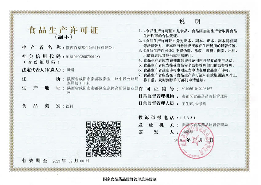 本公司現(xiàn)已與多所科研院緊密合作,公司擁有配套完整的提取、分離、萃取、柱層析、濃縮干燥等設(shè)備和技術(shù),具有豐富的生產(chǎn)天然植物提取物的經(jīng)驗(yàn)和嚴(yán)格的質(zhì)量控制體系。陜西百草萃生物科技有限公司為廣大消費(fèi)著和客戶提供安全、健康、品質(zhì)高、能效強(qiáng)的營(yíng)養(yǎng)健康品,主營(yíng)產(chǎn)品包括:國(guó)食健字鋅硒寶、鋅硒寶、欣寶兒童鋅硒寶、復(fù)合鋅硒片、復(fù)合蛋白鋅、千凈顆粒、蛋白乳鐵片、瑪咖復(fù)合片等、廠家占地五十余畝,廠家建筑面積4000余m2,內(nèi)設(shè)生產(chǎn)車間、質(zhì)量控制室、產(chǎn)品檢測(cè)中心、陰涼倉庫、..